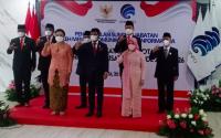 Mewakili Presiden RI Joko Widodo, Menteri Komunikasi dan Informatika Johnny Gerard Plate mengambil sumpah terhadap tujuh Komisioner Komisi Informasi (KI) Pusat periode...